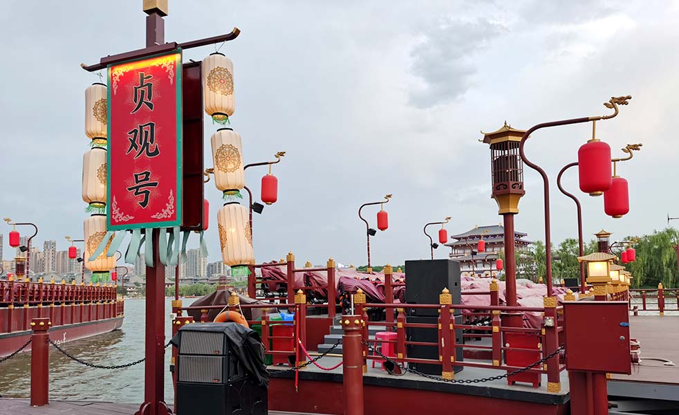大唐芙蓉園位于陜西省西安市城南的曲江開發(fā)區(qū),大雁塔東南側(cè),它是在原唐代芙蓉園遺址以北,仿照唐代皇家園林式樣重新建造的,是中國第一個(gè)全方位展示盛唐風(fēng)貌的大型皇家園林式文化主題公園。