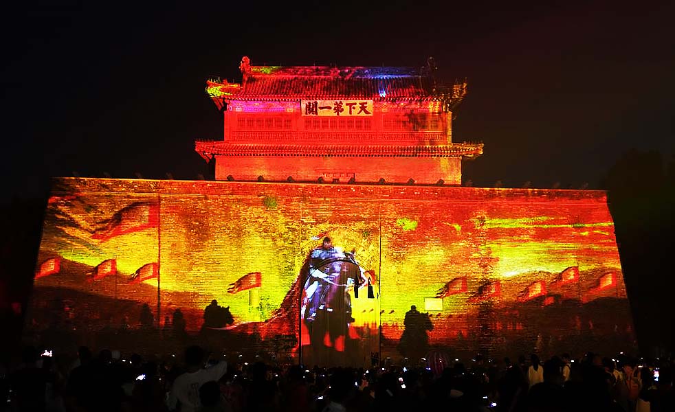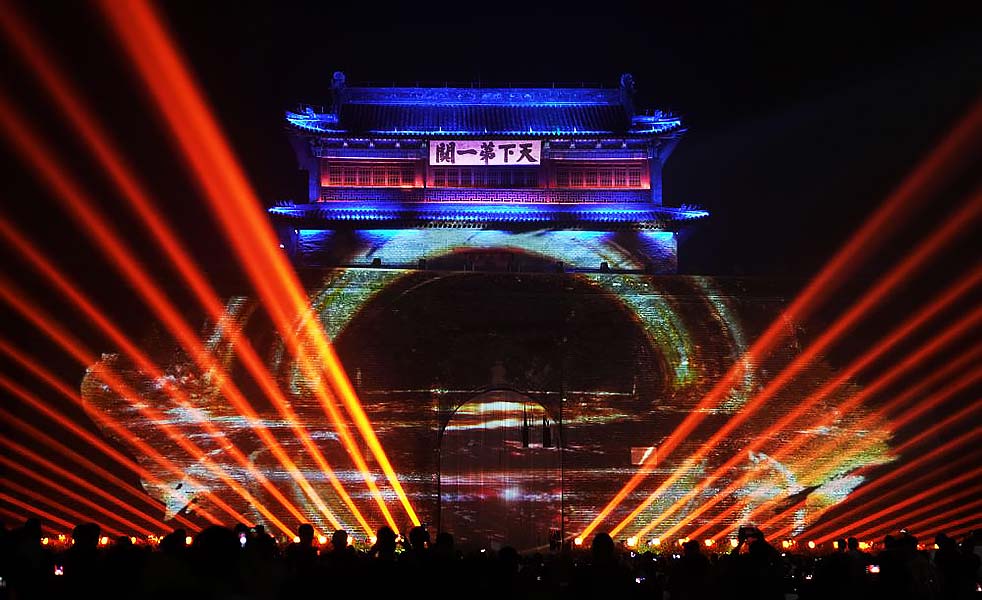 天下第一關《觀?山?!烽L城情境光影秀,是一場以多媒體技術結合光影科技,情、景、人、秀合一的深度互動空間情境秀;配合最新形式的多媒體影像技術手段,讓觀眾近距離領略“天下第一關”的烽煙往昔與今朝美景,再現(xiàn)古城墻的絕代風華。