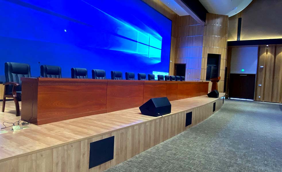 報(bào)告廳使用的主擴(kuò)是AS1563兩只,S218B兩只,拉聲項(xiàng)M2115/96兩只,輔助U8四只,返聽則是M2115/96兩只,臺(tái)唇U26四只。