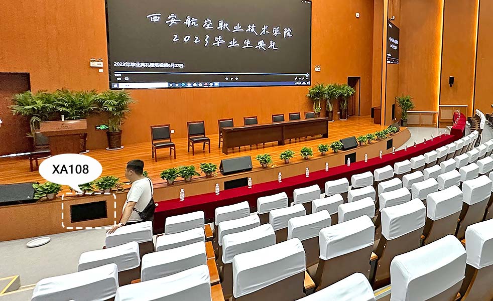 LAX音響為西安航空職業(yè)技術(shù)學(xué)院報(bào)告廳提供擴(kuò)聲系統(tǒng)、會(huì)議系統(tǒng)、錄播系統(tǒng)、中控系統(tǒng)解決方案。