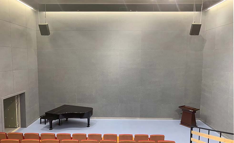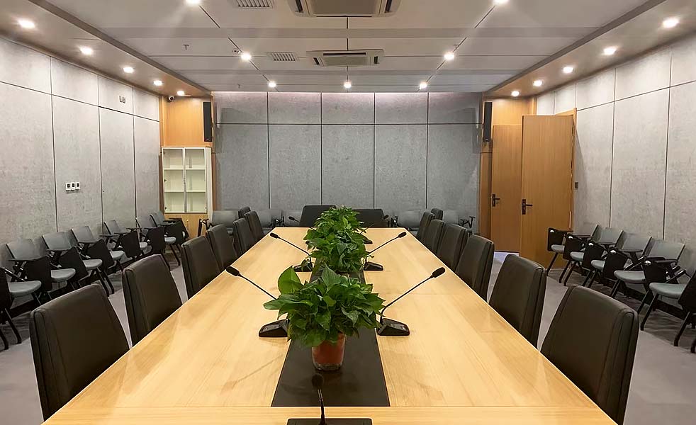 報(bào)告廳中安裝FP12A+兩分頻單驅(qū)動(dòng)全頻音箱;而會(huì)議室安裝的是LAX最新研發(fā)的緊湊型束波擴(kuò)聲音柱系統(tǒng)PTL404,另還有音視頻系統(tǒng)。