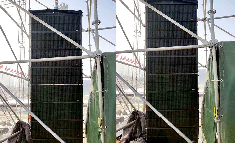 現(xiàn)場(chǎng)系統(tǒng)使用LAX LD210線陣列音箱搭配OPL218B超低頻音箱,另外FP12A+全頻音箱作為補(bǔ)聲產(chǎn)品,超過100只的LD210和OPL218B的音響,可見現(xiàn)場(chǎng)覆蓋范圍之廣。