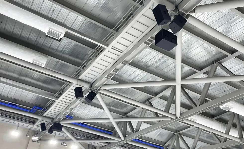 根據(jù)冰球訓(xùn)練館的建聲特點,既要保證準確的覆蓋角度,同時利用音箱的分布將消極反射聲的影響降至最小。