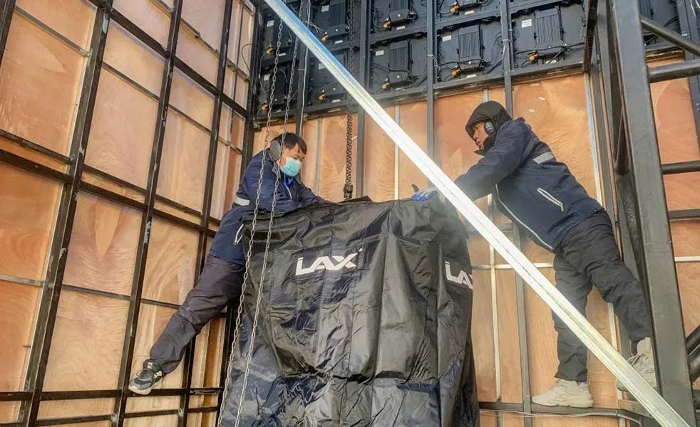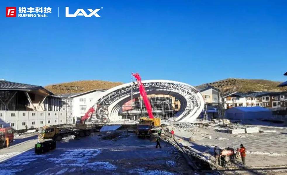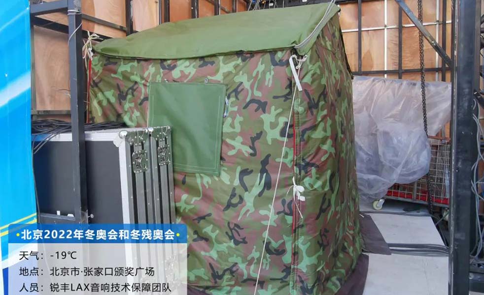 關(guān)于張家口頒獎廣場舞臺,銳豐科技LAX團隊在去年中與北京相關(guān)單位合作,經(jīng)過了前期溝通,場地勘察,產(chǎn)品測試等多方面的準備。如張家口舞臺在2021年11月進行舞臺搭建和相關(guān)設(shè)備安裝,在12月下旬完成了交臺驗收。三大頒獎舞臺整個音響團隊多達30人,我司的技術(shù)工程師主要負責(zé)擴聲系統(tǒng)的設(shè)備保障。張家口舞臺位于戶外,所以工作環(huán)境特別困難,氣溫特別低,低溫對于人員工作和設(shè)備使用都分外艱巨。張家口舞臺使用的是LAX戶外演出的線陣列擴聲系統(tǒng),在多次項目都有使用過:如國慶閱兵大典、廣州過年花城看花、新疆國際會議中心戶外燈光秀等多次大型活動戶外使用驗證,加上系統(tǒng)工程師日夜按時按規(guī)的系統(tǒng)使用,實時監(jiān)控,才保證了整個活動期間能夠安全穩(wěn)定的進行。