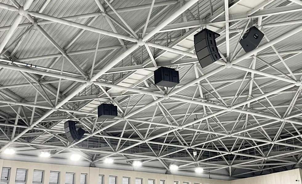 場館采用GV110-P線陣揚聲器以及GV18B-P超低揚聲器,另配四只SR1562全頻音箱,全部根據(jù)該場地的建聲特點進行定制設(shè)計,保證精準的覆蓋角度,同時利用揚聲器的分布將消極反射聲的影響將至最小。