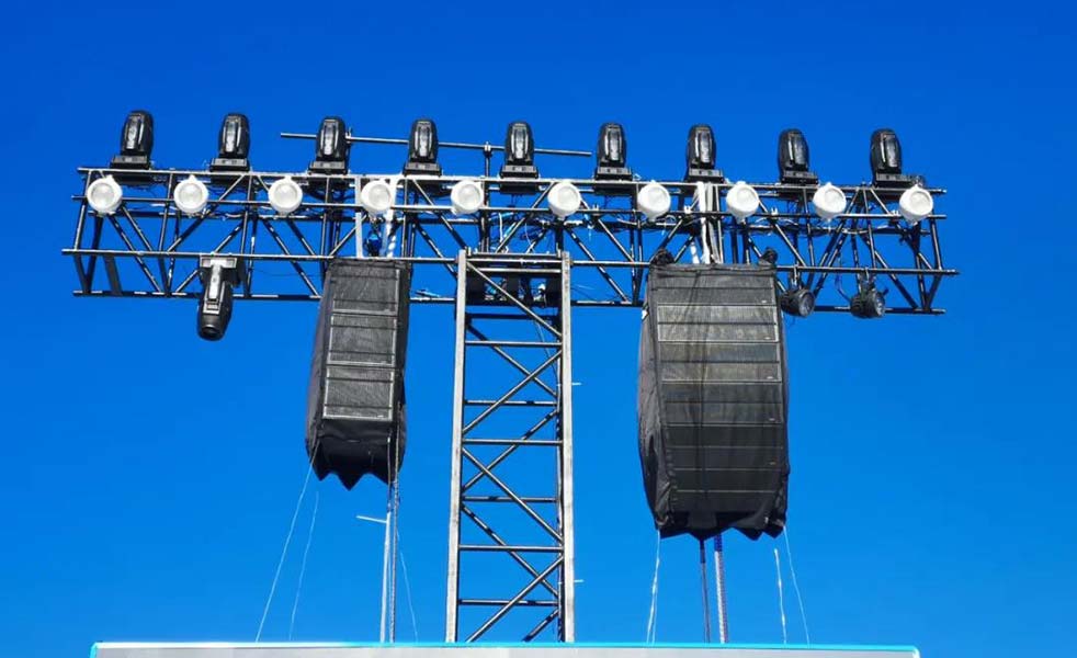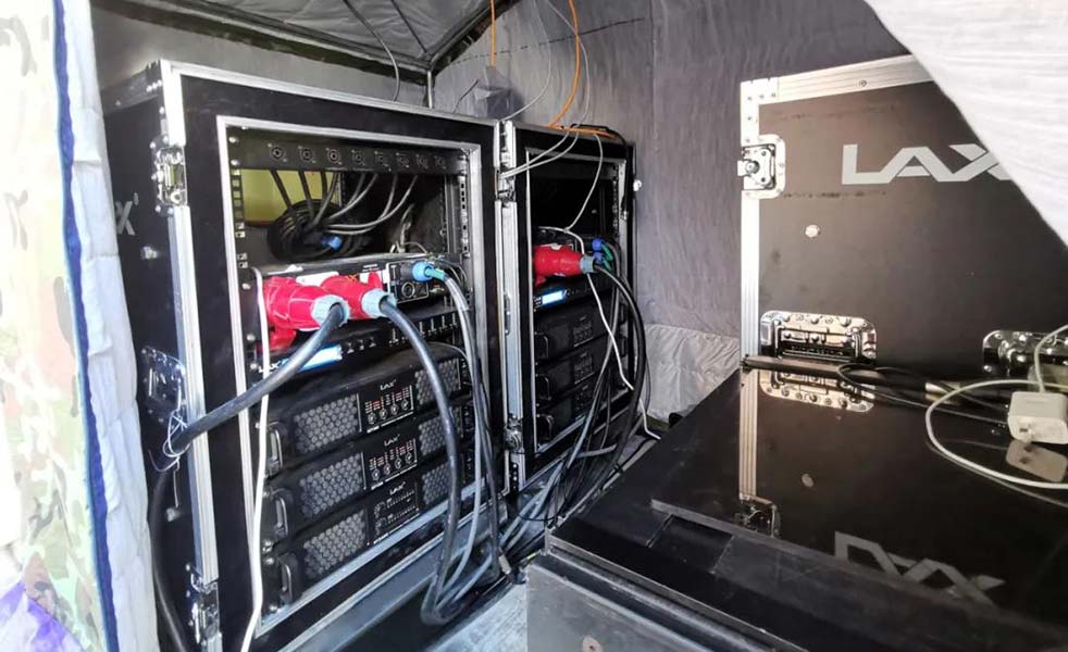 張家口舞臺使用了兩組雙12寸的線陣列主擴揚聲器AT3212V2,保證在戶外兩千平廣場有足夠的聲壓。因為舞美配重設(shè)備要求,我們選型了單18寸可吊掛的大功率超低頻揚聲器ATL18B,保證有足夠的低頻功率輸出,盡量縮小體積以及重量。后級設(shè)備準備了設(shè)備間,在保障人員起早貪黑的辛勞工作下,保證功放開機溫度在10度以上,確保了功放電子設(shè)備穩(wěn)定運行。