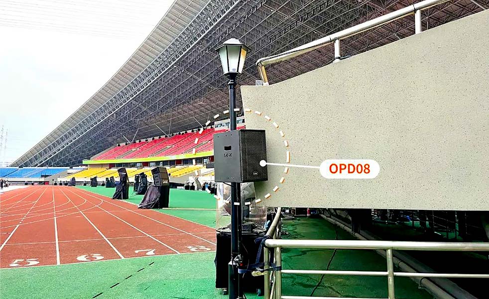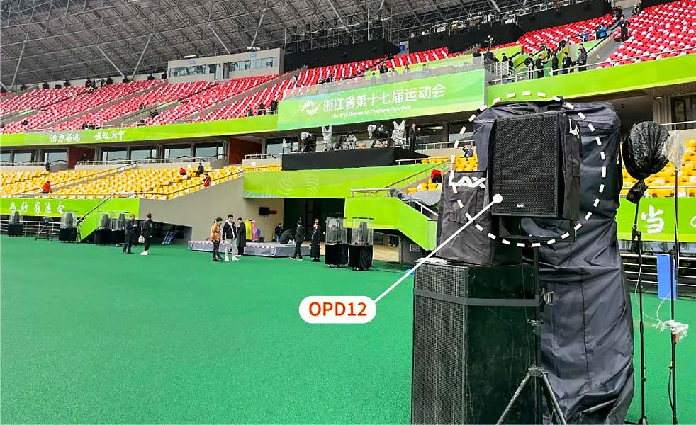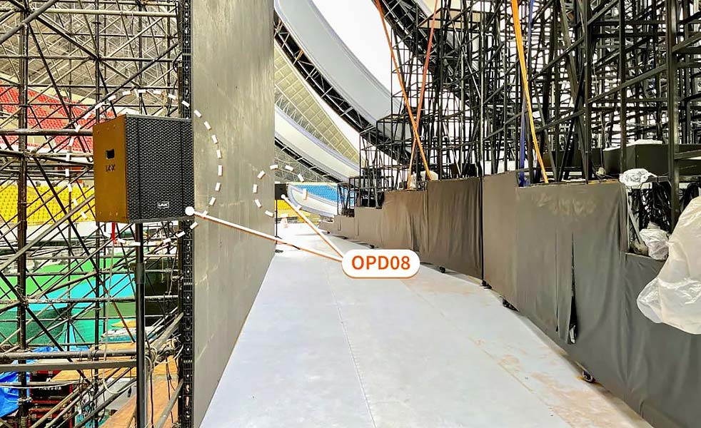 第二,舞臺區(qū)域做到了全區(qū)域聲音覆蓋而看不到音箱,給演員演出和投影畫面視覺呈現(xiàn)效果留出了最大的空間。舞臺返聽經(jīng)過多方面考慮最終,選用了10只OPD12束波揚聲器,它具有身形小聲壓大的特點,在主擴旁邊支架安裝,覆蓋舞臺滿足演員返聽的需求。在舞臺后場上下場口增加了兩支OPD08作為候場演員的補聲,本次開幕式震撼效果完美的呈現(xiàn),OPD的3D束波系列音箱功不可沒。