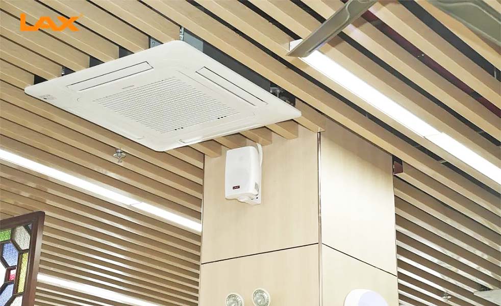 輔助聲音響選用8只8寸吸頂音響,采用吸頂安裝均勻分布在后區(qū)天花上,為后區(qū)隔間提供單獨的擴聲系統(tǒng),以及隔間打開后作為后區(qū)的補聲。