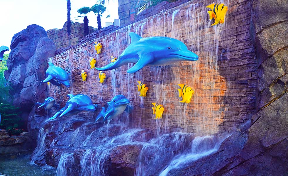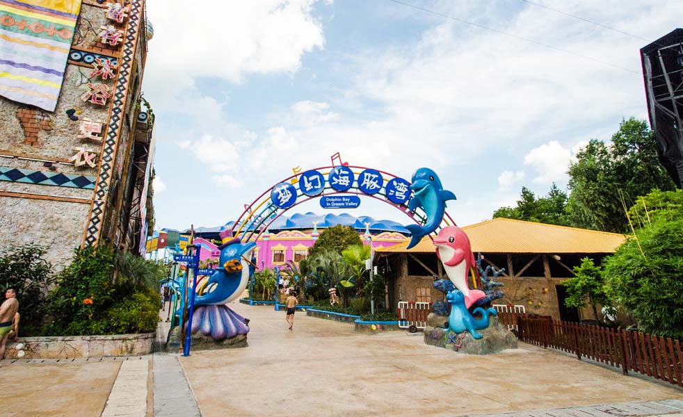 夢幻海豚灣坐落于橫店影視城夢幻谷景區(qū),整個(gè)海豚灣分為峽谷區(qū)、夢幻海底世界區(qū)和淺海彎區(qū)三大主題區(qū)域。