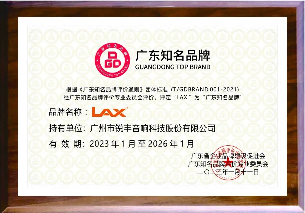 一步一腳印,榮耀絕非偶然。LAX深耕專業(yè)音響領(lǐng)域,從產(chǎn)品研發(fā)、應(yīng)用設(shè)計(jì)、施工安裝等領(lǐng)域全方位筑牢安全堡壘,先后獲得中國知名品牌、品牌強(qiáng)國先行工程入選品牌、廣東省制造業(yè)企業(yè)500強(qiáng)、廣東省優(yōu)秀自主品牌、廣東省創(chuàng)新型企業(yè)、高新技術(shù)企業(yè)、廣東演藝設(shè)備產(chǎn)業(yè)集群核心企業(yè)、最具影響力演藝設(shè)備名優(yōu)品牌、音頻產(chǎn)品測(cè)試中心科研基地、創(chuàng)新產(chǎn)業(yè)化示范基地等殊榮。