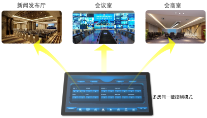 會(huì)議室、會(huì)商室、研討室、新聞發(fā)布廳、多功能廳等多區(qū)域均可通過(guò)無(wú)線觸控屏集中控制和管理,實(shí)現(xiàn)全局統(tǒng)一管理。