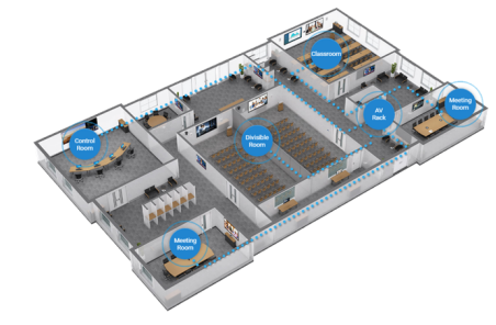 系統(tǒng)可實(shí)現(xiàn)各個(gè)會(huì)議室、會(huì)商室和研討室室之間互聯(lián)互通,整個(gè)系統(tǒng)內(nèi)所有音、視頻信號(hào)互聯(lián)互通,統(tǒng)一調(diào)度管理,所有實(shí)時(shí)接入的信號(hào),都可以同步進(jìn)行切換至任一區(qū)域的任一顯示設(shè)備上,方便不同區(qū)域?qū)崟r(shí)分享同一信息。