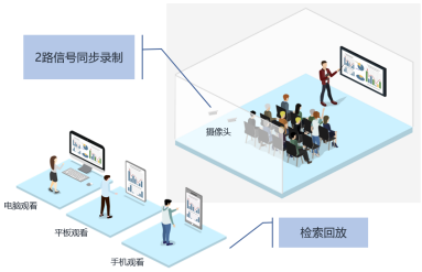 系統(tǒng)支持通過(guò)接入錄播平臺(tái),任意指定錄制系統(tǒng)內(nèi)各路信號(hào),支持同時(shí)2路信號(hào)同步錄制功能,可通過(guò)各類終端對(duì)錄制的信號(hào)內(nèi)容進(jìn)行檢索回放。