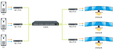 通過(guò)分布式拼接節(jié)點(diǎn),可直接對(duì)接LED大屏發(fā)送卡,無(wú)需拼接處理器即可實(shí)現(xiàn)任意拼接、開窗、漫游、疊加、畫中畫等各種拼接功能。同時(shí)也支持任意組合模式的LCD、DLP拼接大屏。