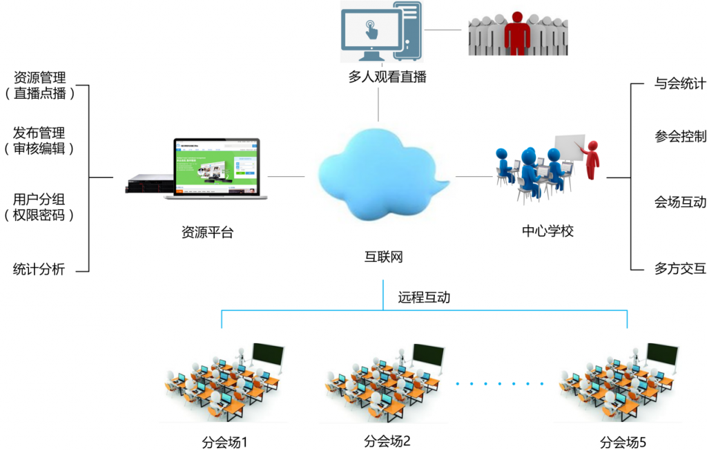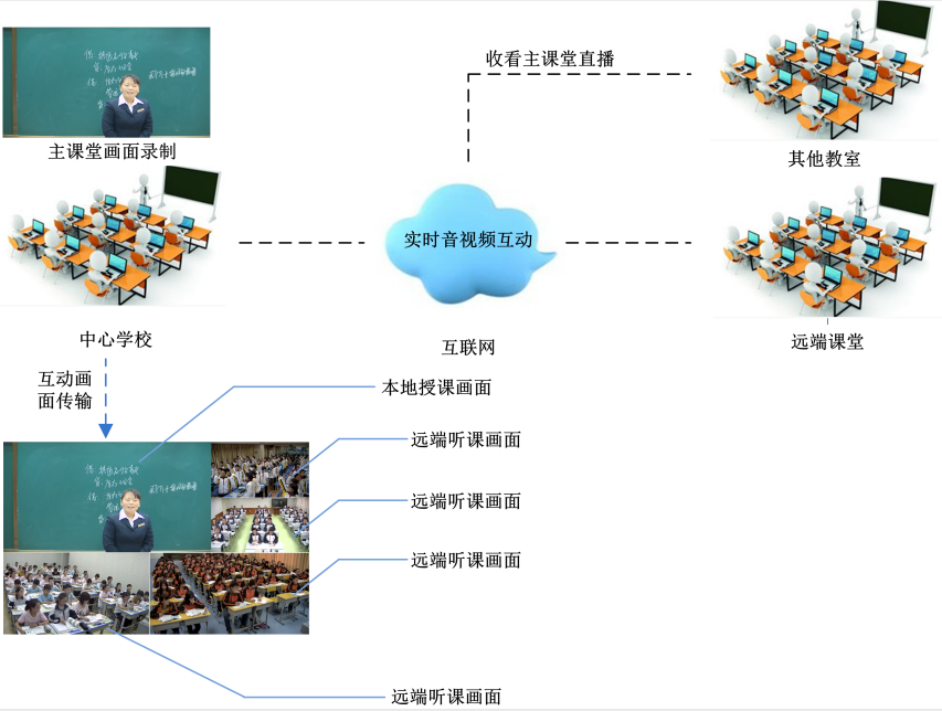 建設(shè)一個(gè)互動(dòng)課堂通訊大平臺(tái),建立多間高清互動(dòng)課室,突破時(shí)間空間局限,搭建不同班級(jí)、不同學(xué)?;ヂ?lián)互通的教學(xué)橋梁,使中心學(xué)校與薄弱學(xué)校之間實(shí)現(xiàn)一對(duì)一的互動(dòng)教學(xué),擴(kuò)大教育的輻射力度,解決貧困地區(qū)教育資源的短缺問題,進(jìn)一步構(gòu)建教育信息化共建共享機(jī)制,實(shí)現(xiàn)教育資源均衡化。
