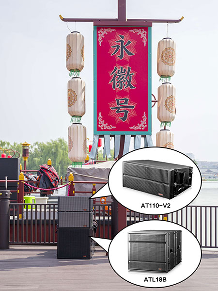 表演是芙蓉園的核心,這意味著對(duì)于演藝節(jié)目的質(zhì)量有著極高要求,同時(shí),音響系統(tǒng)對(duì)于演藝節(jié)目質(zhì)量的加持毋庸置疑。這次根據(jù)場(chǎng)地需求,主音箱采用16只AT3212-V2線陣音箱,主擴(kuò)超低由8只S218B組成,把充足的音頻能量均勻鋪滿全場(chǎng),盡現(xiàn)節(jié)目的深邃玄奧的音樂(lè)效果和宏偉雄壯的聲音力量。