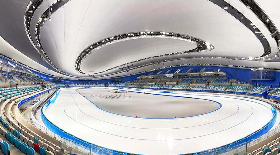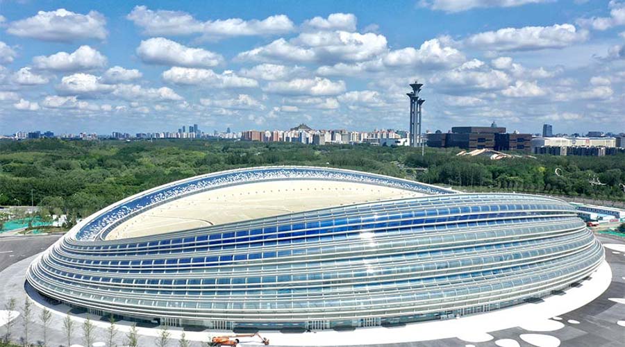 國家速滑館是北京2022年冬奧會北京主賽區(qū)標志性場館、唯一新建的冰上競賽場館。它的設(shè)計理念來自一個冰和速度結(jié)合的創(chuàng)意,22條晶瑩美麗的“絲帶”狀曲面玻璃幕墻就像運動員滑過的痕跡,象征速度和激情,因此又被稱為“冰絲帶”。2022年北京冬奧會期間它將承辦速度滑冰比賽。