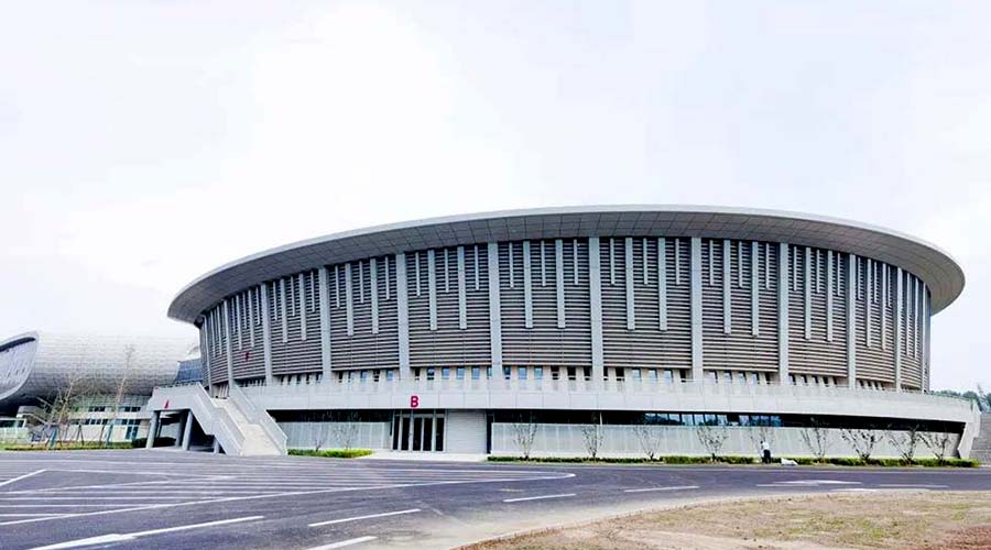 北京市冰上項目訓(xùn)練基地位于延慶城中心,總建筑面積8萬多平方米,主要包括綜合訓(xùn)練館、教學(xué)管理公寓樓及其他附屬設(shè)施。從空中俯瞰,圓角方形場館和半圓形場館連成一體,西側(cè)綜合館為半圓形,如同半個“冰球”,東側(cè)訓(xùn)練館為八邊形,似一個方形的“冰壺”。