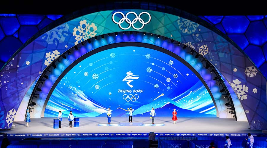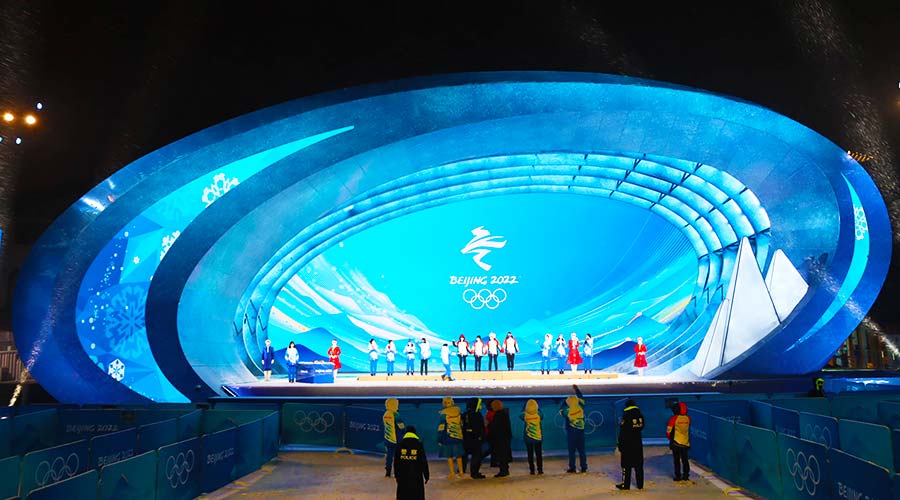 北京頒獎廣場舞臺名為“美美與共”,位于北京城區(qū)的國家體育場和國家游泳中心之間,飽含喜迎八方客、共度中國年的良好寓意。