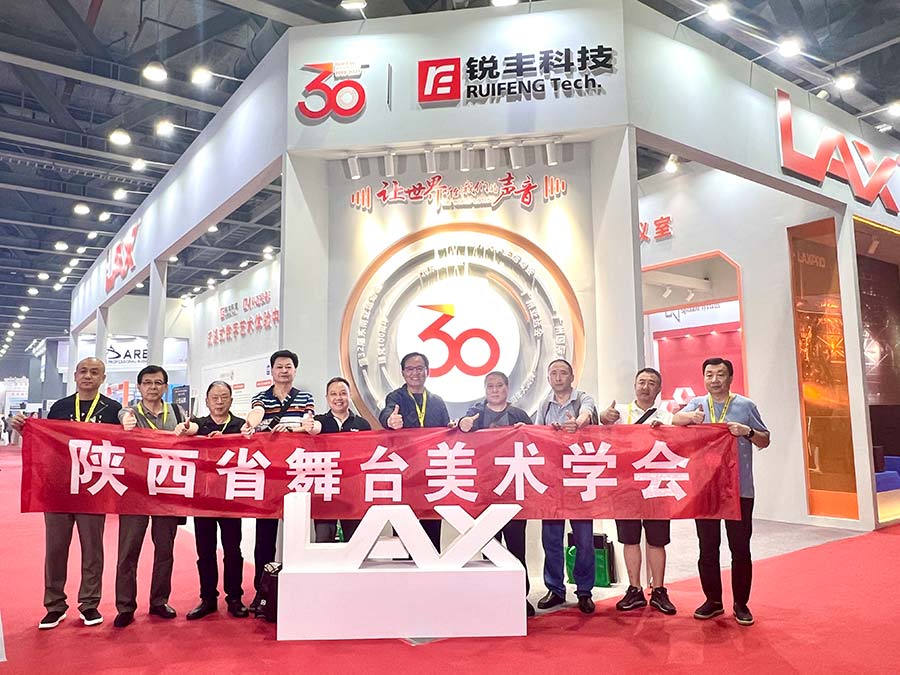 5月10日下午,參加“2023GETshow廣州(國際)演藝設(shè)備智能聲光產(chǎn)品技術(shù)展覽會(huì)”的陜西省舞美學(xué)會(huì)副會(huì)長薛國玉,副會(huì)長兼秘書長張國強(qiáng),副會(huì)長楊宏文、張小鵬、張亞雄,常務(wù)副秘書長兼辦公室主任王忠元,燈光專委會(huì)主任委員王冬,專家顧問委員會(huì)主任委員孔力,舞臺(tái)設(shè)備技術(shù)專委會(huì)副主任委員魏文等一行專程前往廣州市番禺區(qū)廣州市銳豐音響科技股份有限公司進(jìn)行參觀訪問。