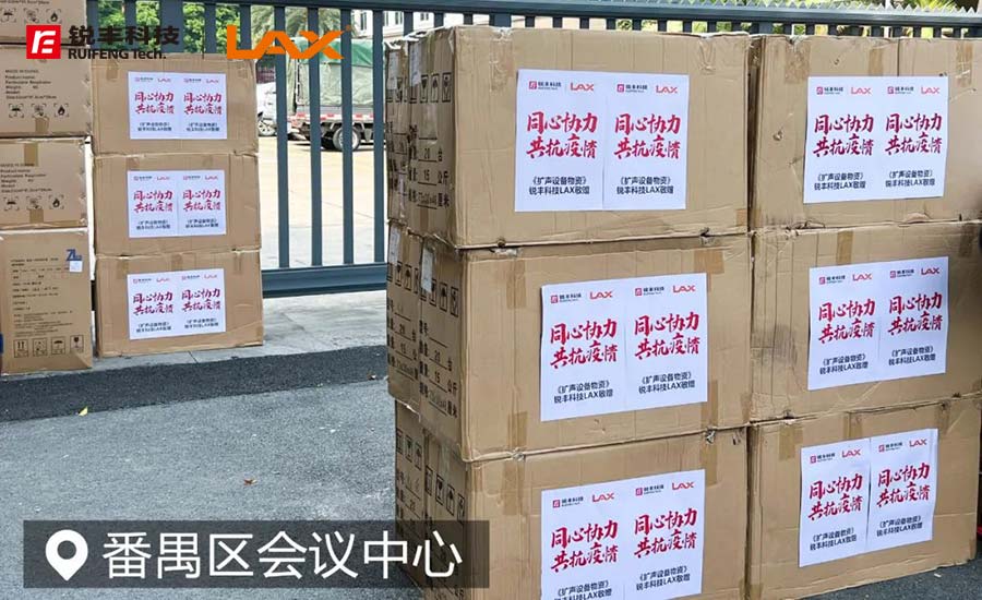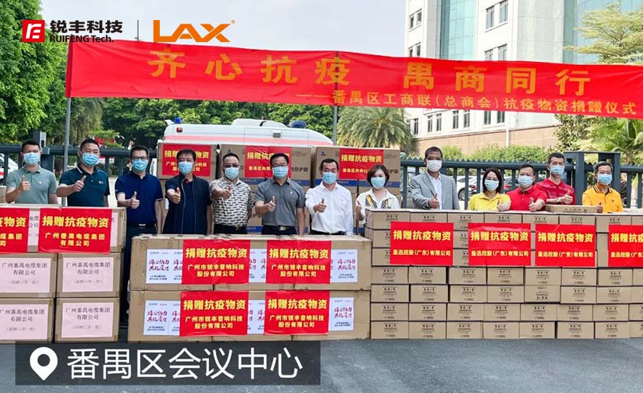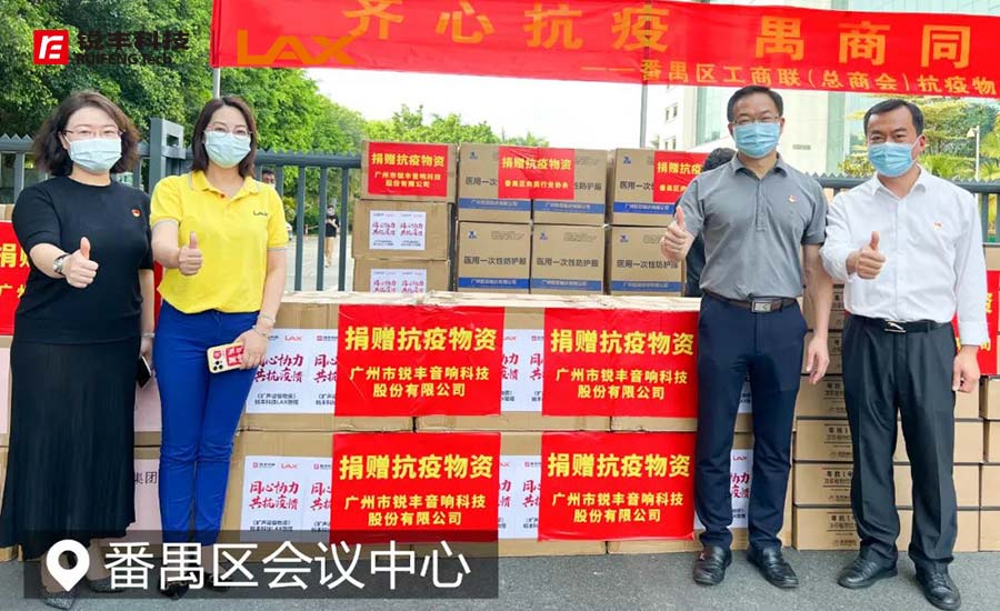 活動(dòng)中,由廣州市銳豐音響科技股份有限公司董事副總經(jīng)理、LAX品牌負(fù)責(zé)人陸秀冰代表企業(yè)出席本次捐贈(zèng)活動(dòng),共捐贈(zèng)擴(kuò)聲器300套?!翱箵粢咔椋巳擞胸?zé)”,作為番禺本土企業(yè)必須增強(qiáng)大局意識(shí),踐行社會(huì)責(zé)任,展現(xiàn)企業(yè)擔(dān)當(dāng),為我區(qū)打贏疫情防控這場硬仗貢獻(xiàn)禺商力量!