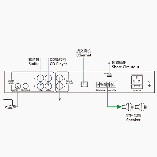 ◆ 可選擇定壓70V工作模式,用于公共廣播系統(tǒng)。